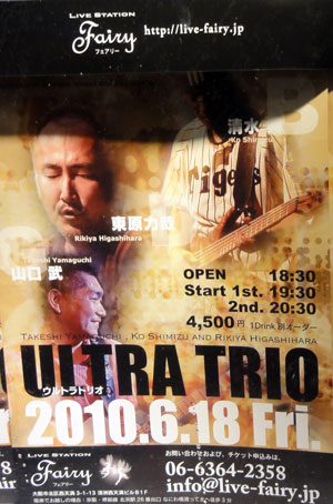 ULTRA TRIOは、ギター山口 武さん、そして!NANIWA EXPの清水 興さん(ベース)と東原 力哉さん(ドラム)というまさにウルトラな三人組