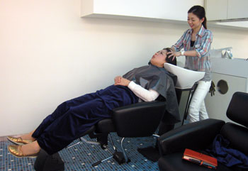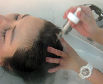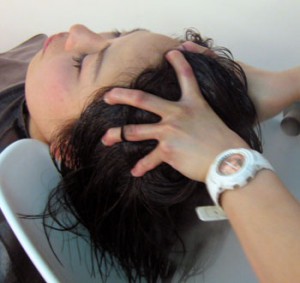 ラストはシャンプー・トリートメントしながらマッサージ。これも海藻エキスの入ったミネラルたっぷりシャンプー。