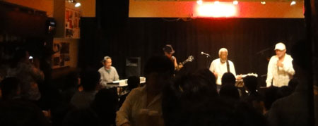 共演は、NANIWAのドラマー・東原力哉さんとキーボード・中村建治さん、ギターには空手の師範でもある西野やすしさん、