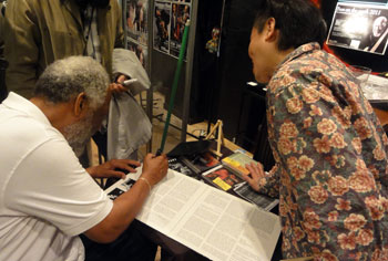 LIVE終演後、チャックさんの周りは、ファンの皆さんが次から次へと押し寄せ大撮影大会&サイン会!