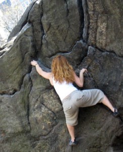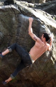 スパイダーマンみたいになってロッククライミングの練習をしている人